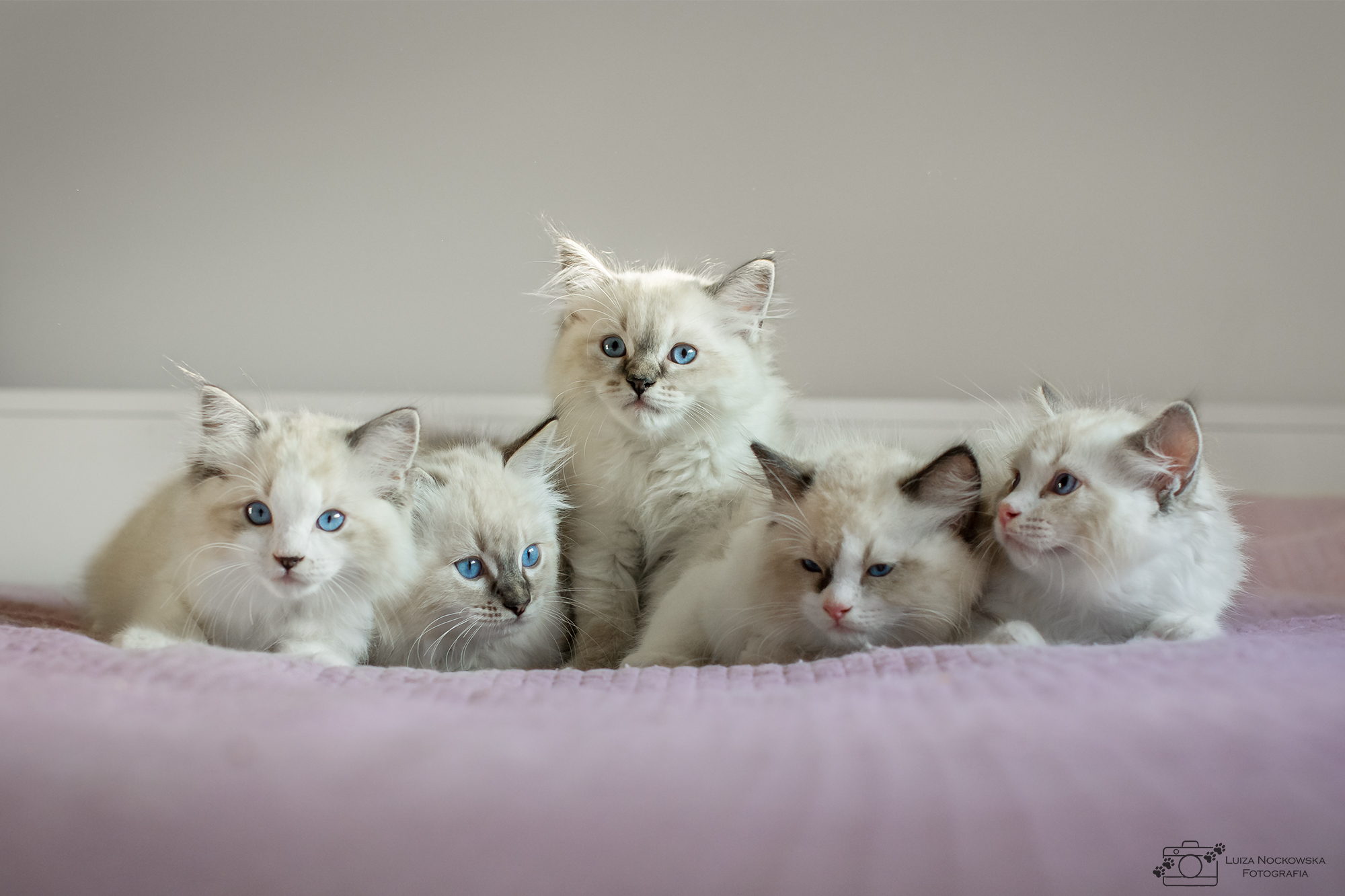 Nasze kociaki od pierwszych chwil życia mają kontakt z człowiekiem. W miarę dorastania poznają też inne koty oraz psy, które z nami mieszkają. Nasze kocięta będą miały pięciopokoleniowy rodowód, będą odrobaczone oraz zaszczepione, a także wykastrowane. Do nowych domów otrzymają również wyprawki.